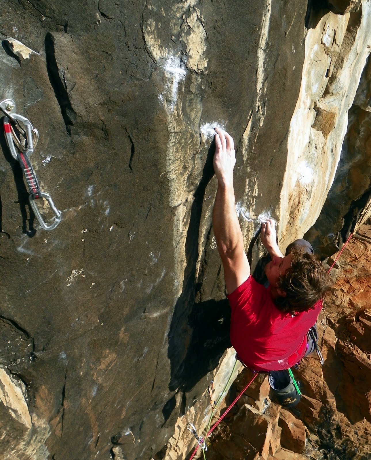 and one of me blowing a heel-hook and pitching off at the anchors of the same route